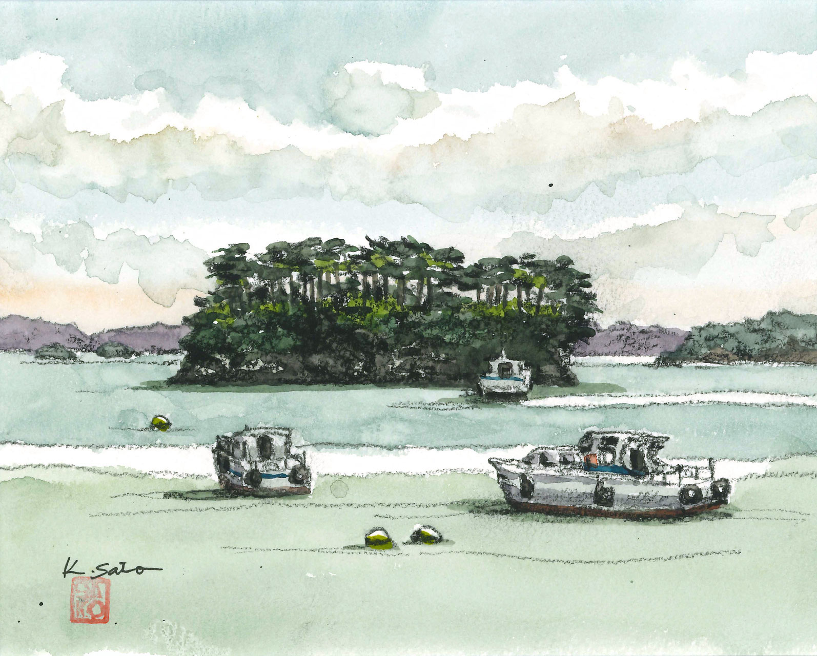 宮城県松島町に暮らし、松島の風景を描き続ける。